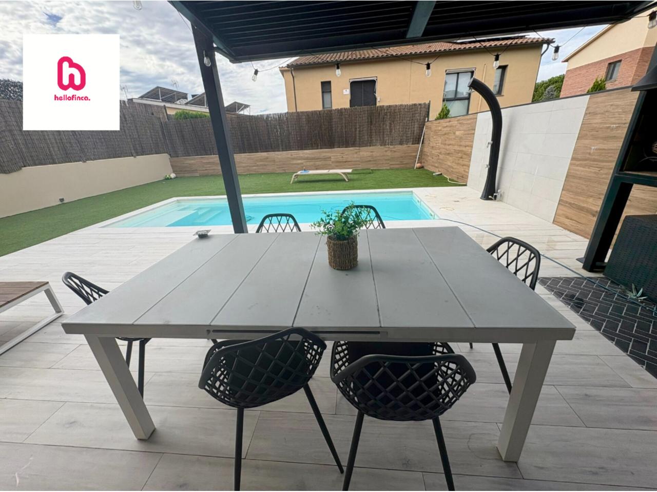 El exterior ofrece un amplio jardín con piscina, zona de descanso bajo el porche y espacio de barbacoa, perfectos para disfrutar de reuniones familiares o momentos de relax. El garaje, con acceso directo, está preparado para la carga de coche eléctrico.