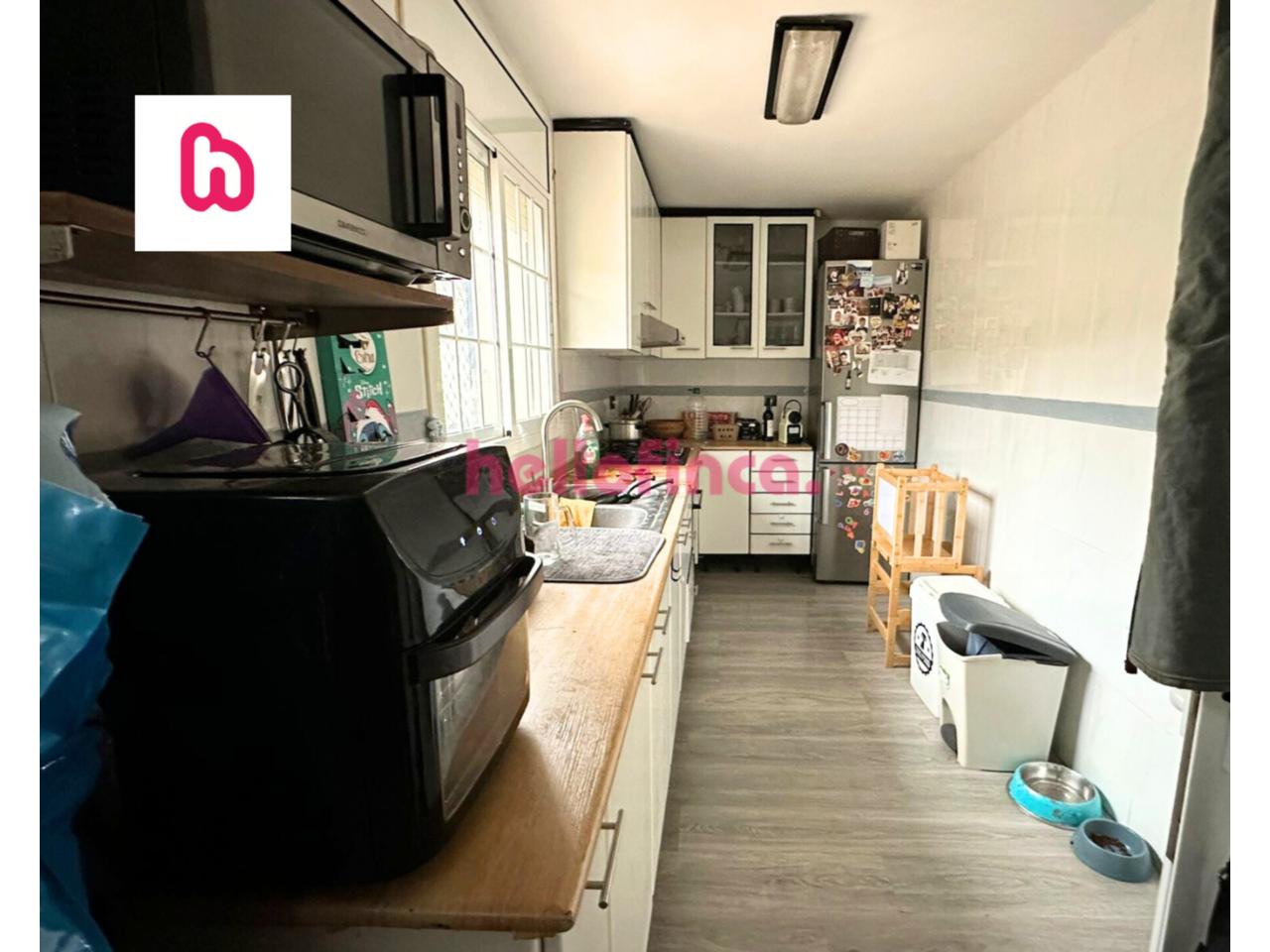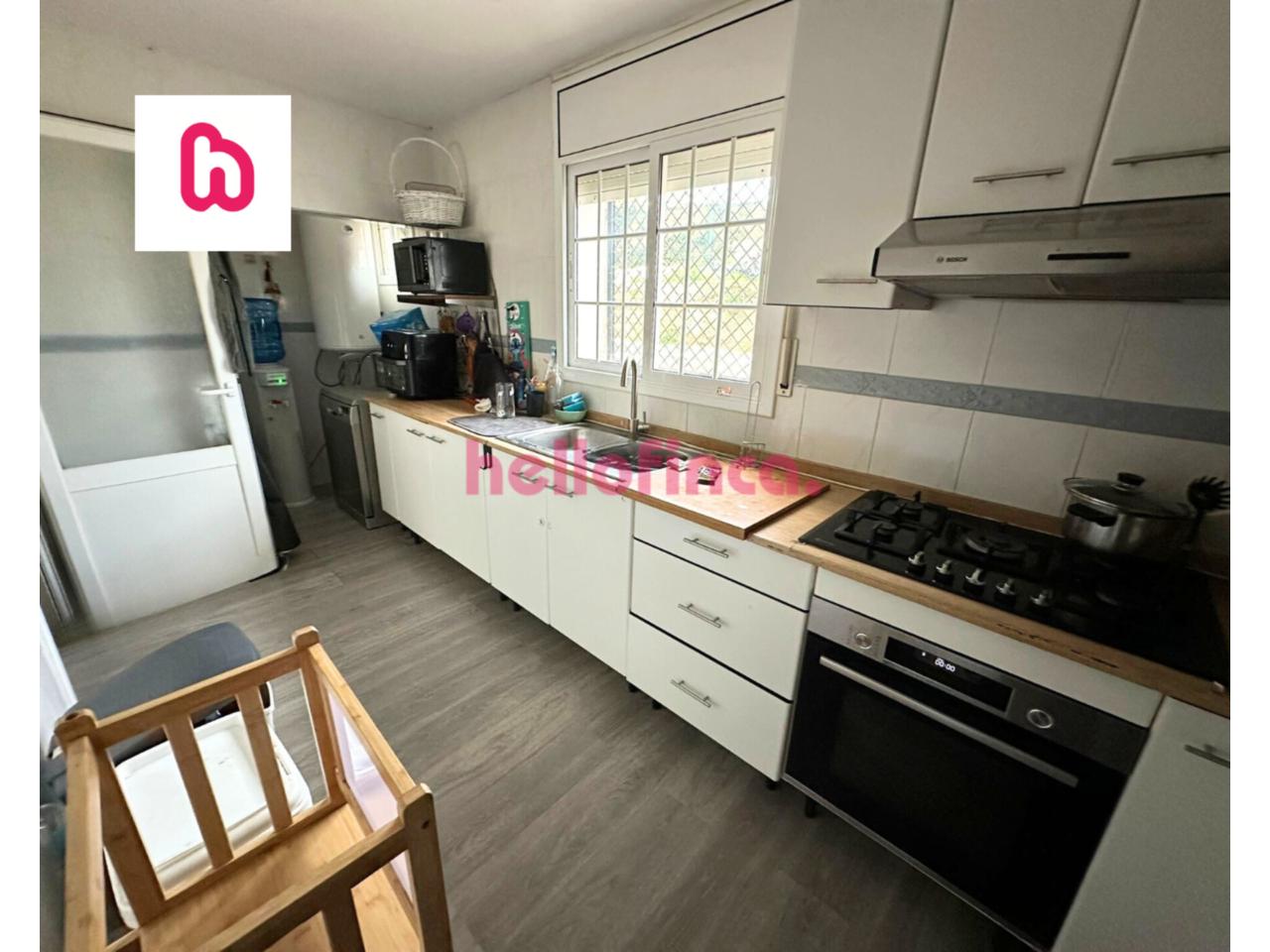 Salón-comedor amplio y muy luminoso, con chimenea y salida directa al patio, creando un espacio acogedor y funcional durante todo el año. Cocina independiente y equipada, con acceso a un práctico lavadero y una gran despensa, ideal para almacenamiento y organización.